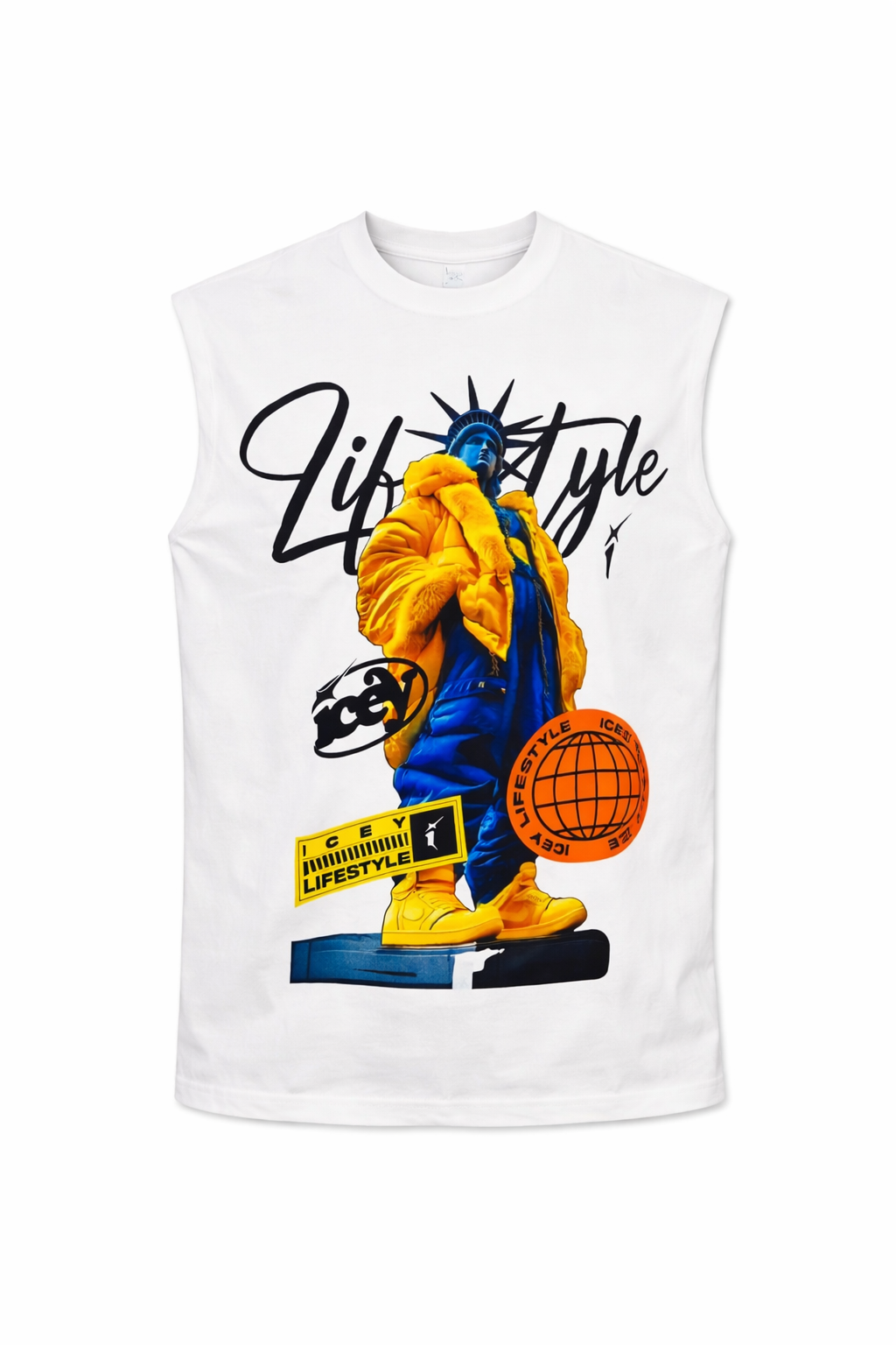 Elevate your casual wear with our Lifestyle Graphic Sleeveless T-Shirt. Perfect for warm weather, hitting the gym, or creating a standout street-style look.